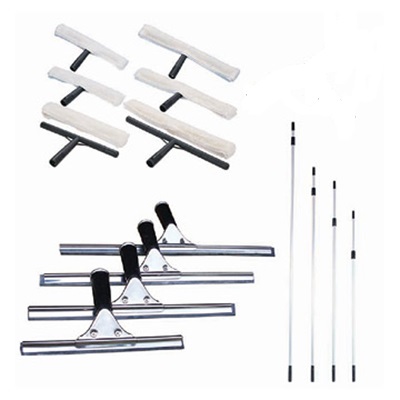Dụng cụ lau kiếng: Thanh gạt kiếng, bông lau kiếng, thanh nối nhôm.