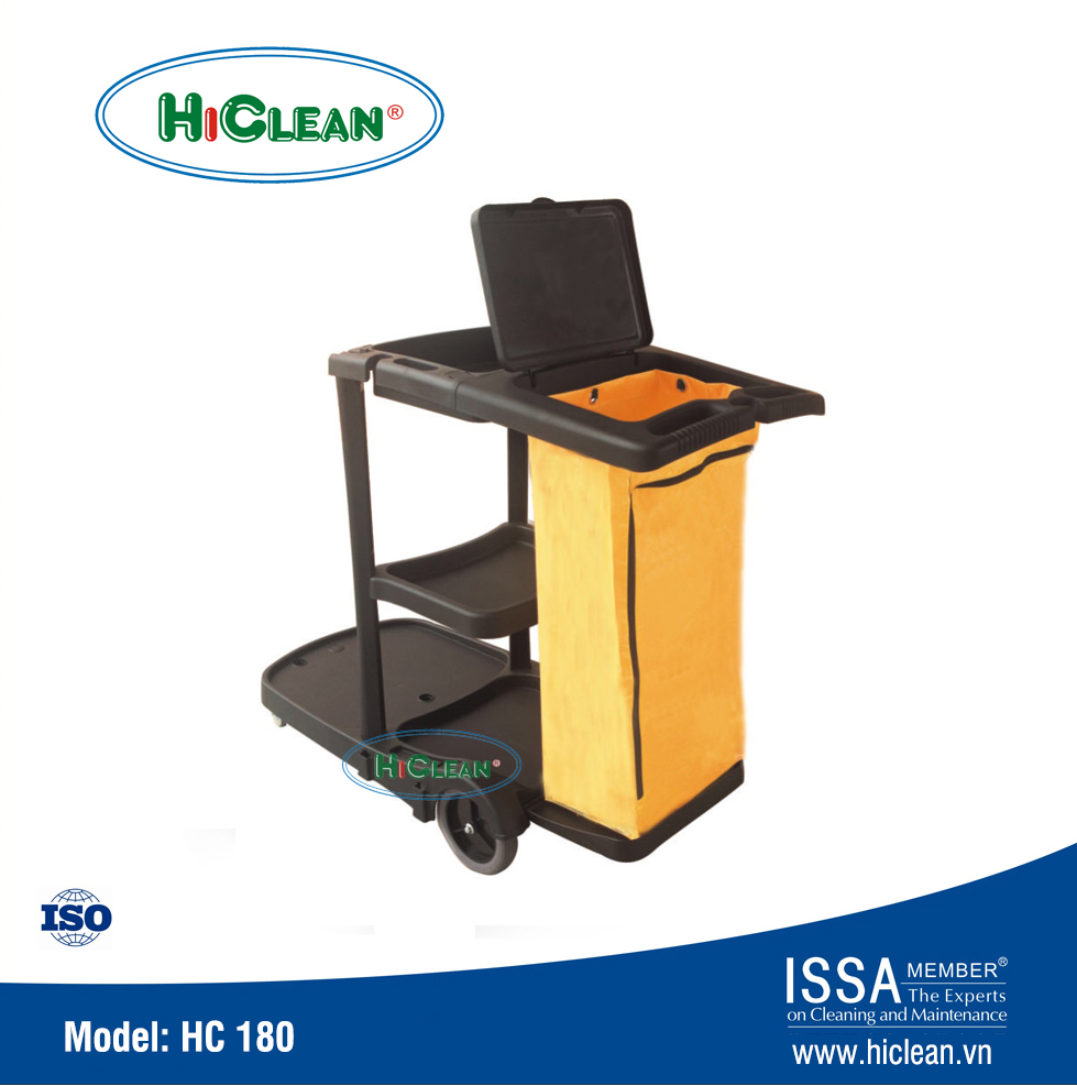 Xe đẩy đồ dơ khách sạn HiClean HC 180 là sản phẩm đa năng có thể thu dọn và tích hợp xe vắt nước để lau sàn vệ sinh.